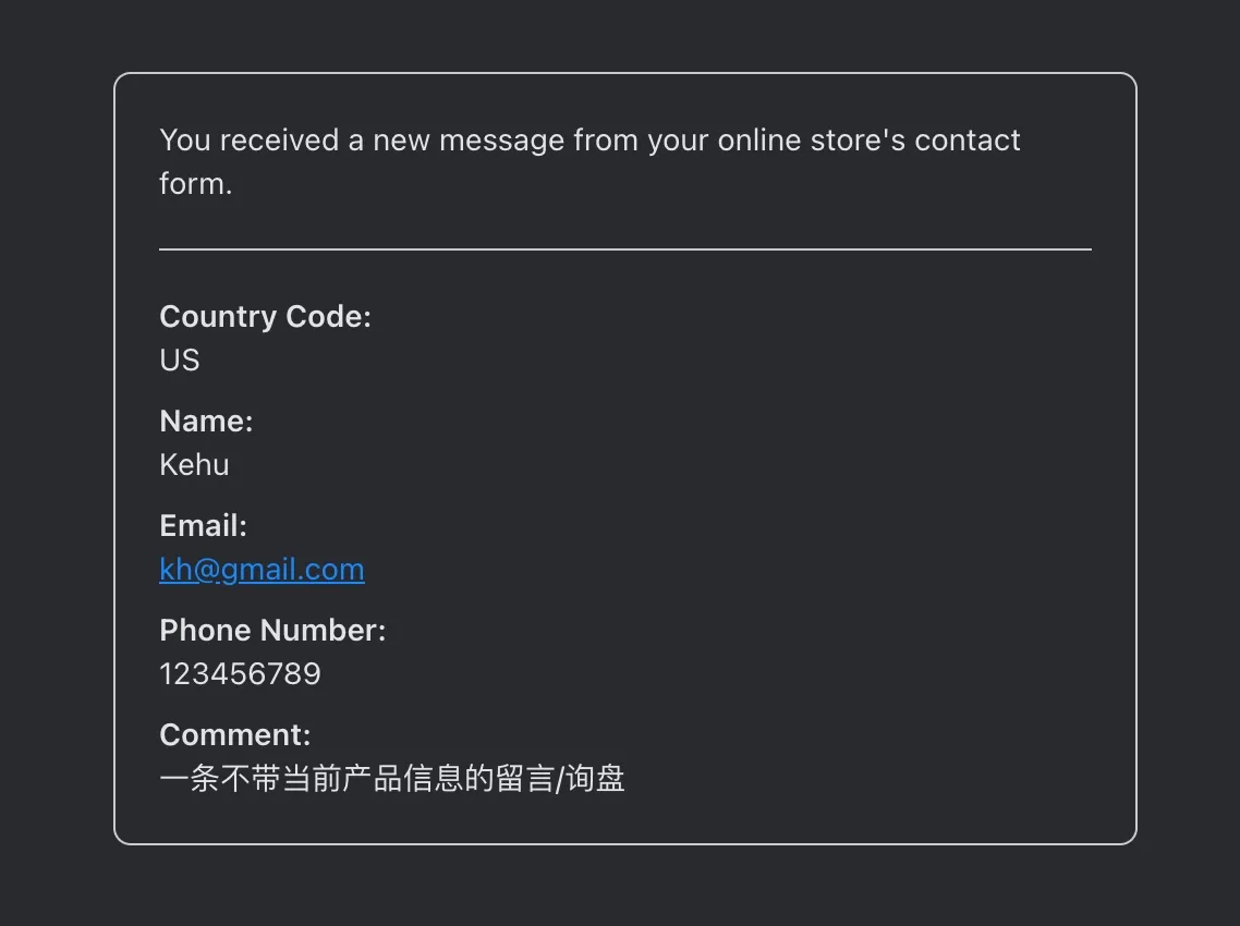 在 Shopify 询盘中附带客户咨询的产品页信息,避免客服或运营再去询问客户问的是哪款产品。